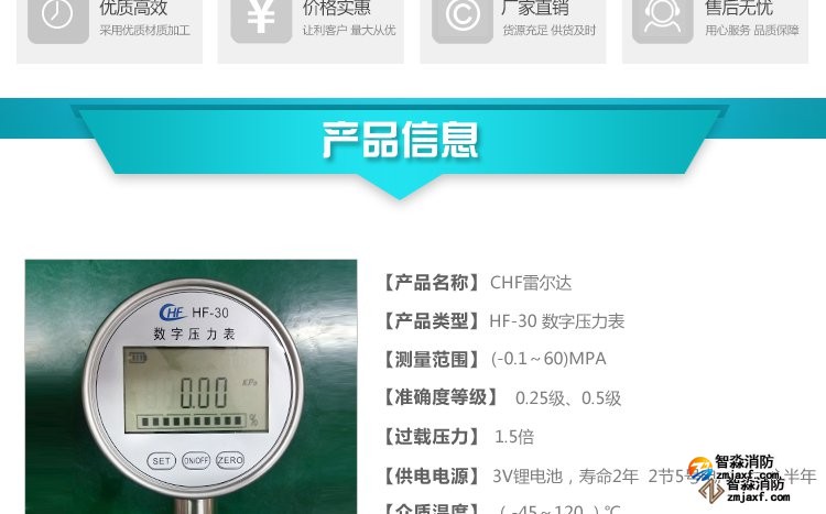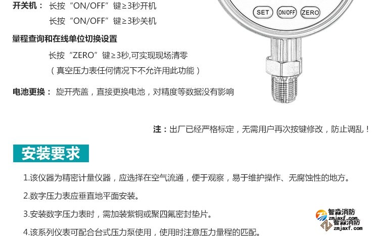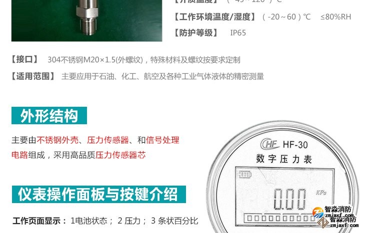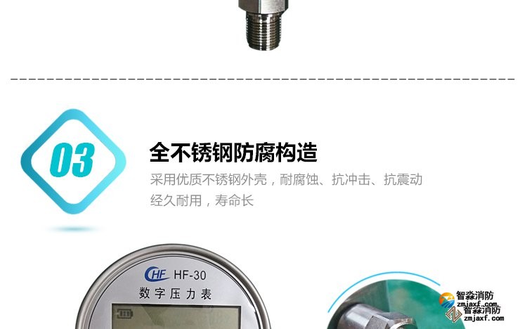數(shù)字壓力表量程0-20MPa,精度0.4級(jí)測(cè)試消火栓用30. 細(xì)水霧末端試水裝置壓力表量程:0MPa~0.6MPa;精度:0.4級(jí)安裝在系統(tǒng)管網(wǎng)或分區(qū)管網(wǎng)的末端,檢驗(yàn)系統(tǒng)啟動(dòng)。