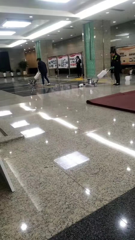 根據花崗石石損壞程度的不同,用翻新機配合不同的鉆石碟片進行打磨,必須遵守石材線路紋理進行操作,直至石材表面平滑色澤統一;用研磨劑配合墊子打磨拋光直至 滲透并干燥,用增光劑配合墊子打磨直至干燥,噴保護劑進行打磨直至亮度恢復如初,經翻新過的石材表面根據其自身的材質不同高亮度可達120度以上。