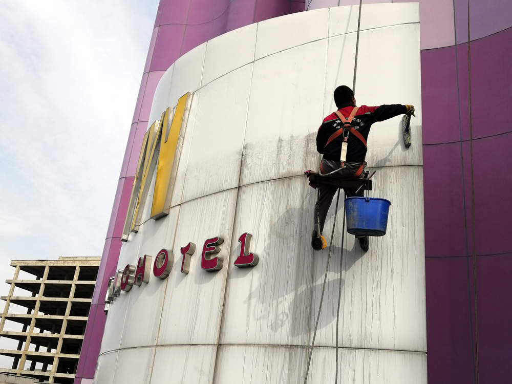 2、人員條件:外墻清洗人員必須有良好的身體和心理素質。年齡應在40歲以下。血壓、心臟、視力良好,不能有恐高癥。